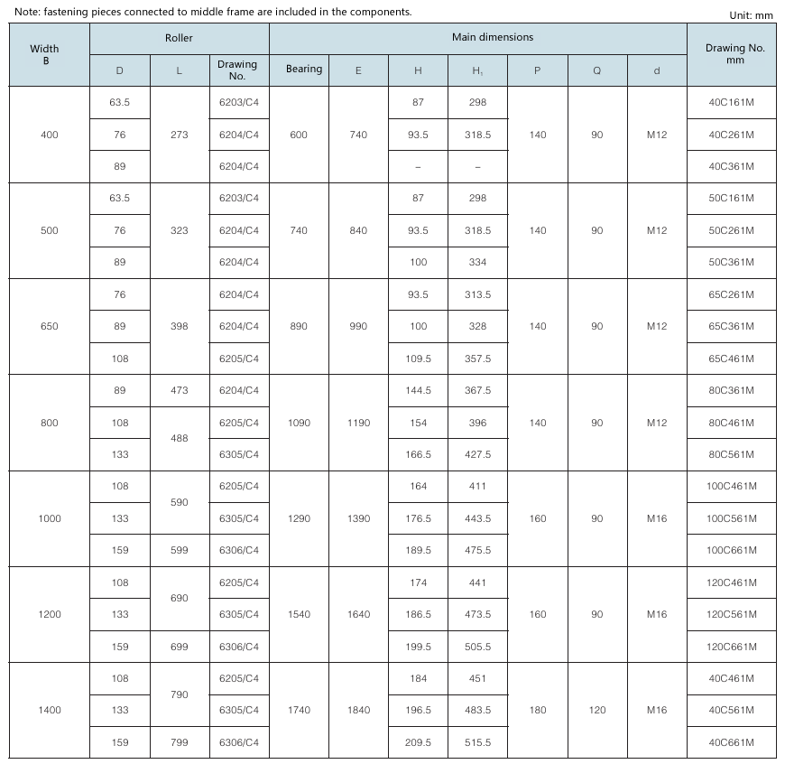 Requirement for drum surface: drawing No. with “G” as postfix refers to smooth face drum; drawing No. without “G” as postfix refers to rubber face drum.